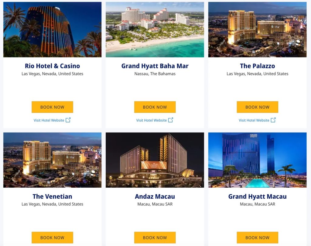 除 Rio Las Vegas 外,活动还覆盖全球 21 家凯悦旗下酒店,包括: